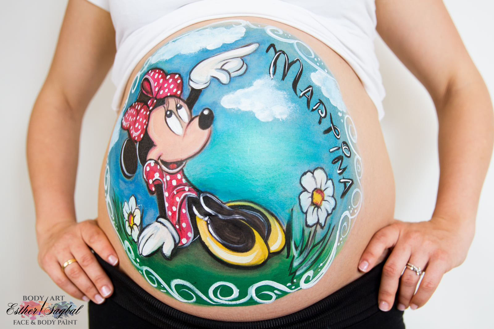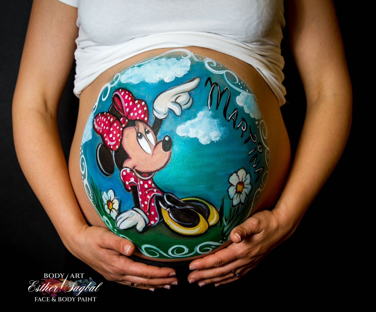 La pintura en piel tiene buena durabilidad y podrás pasar el día luciendo tu barriguita pintada.