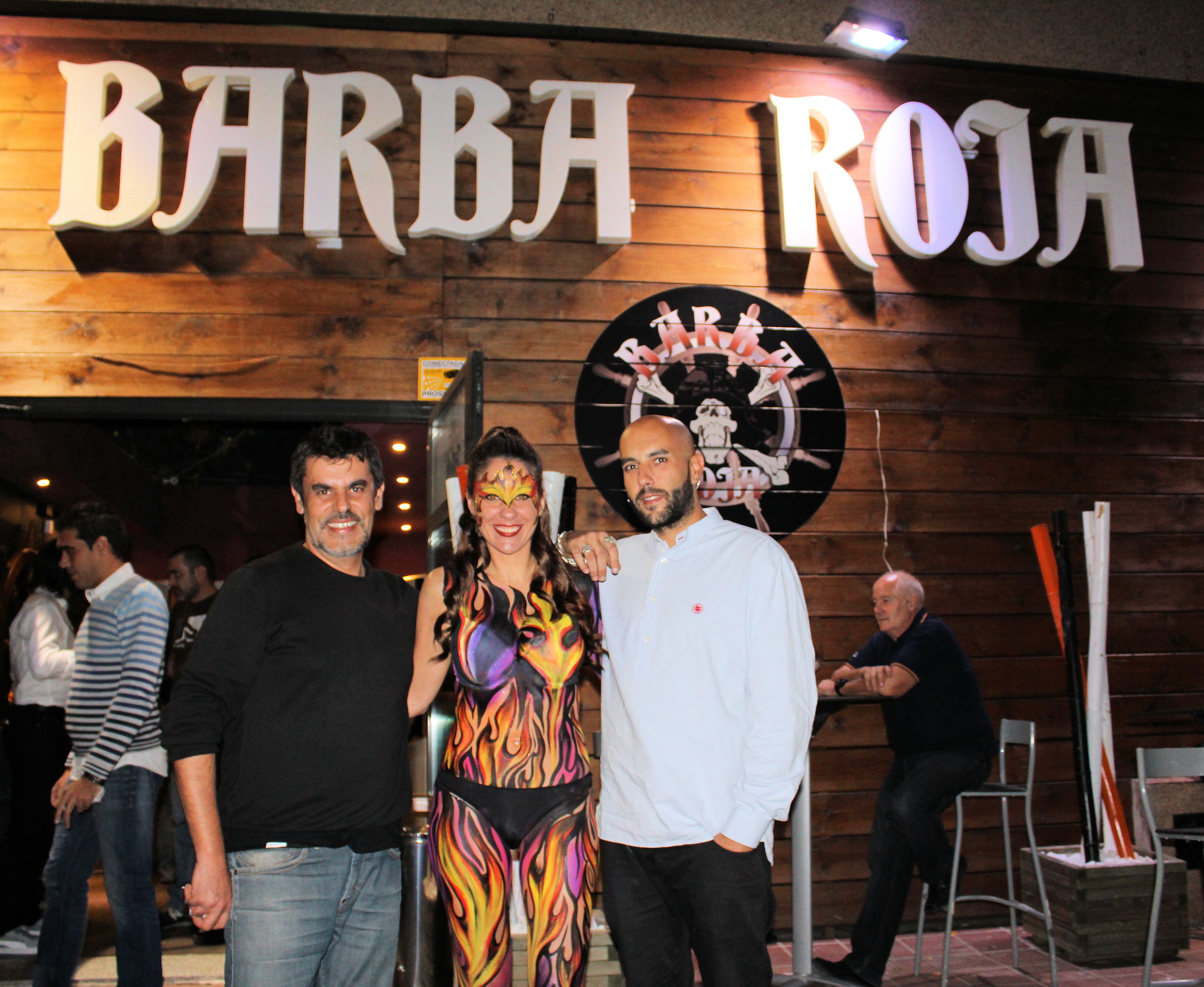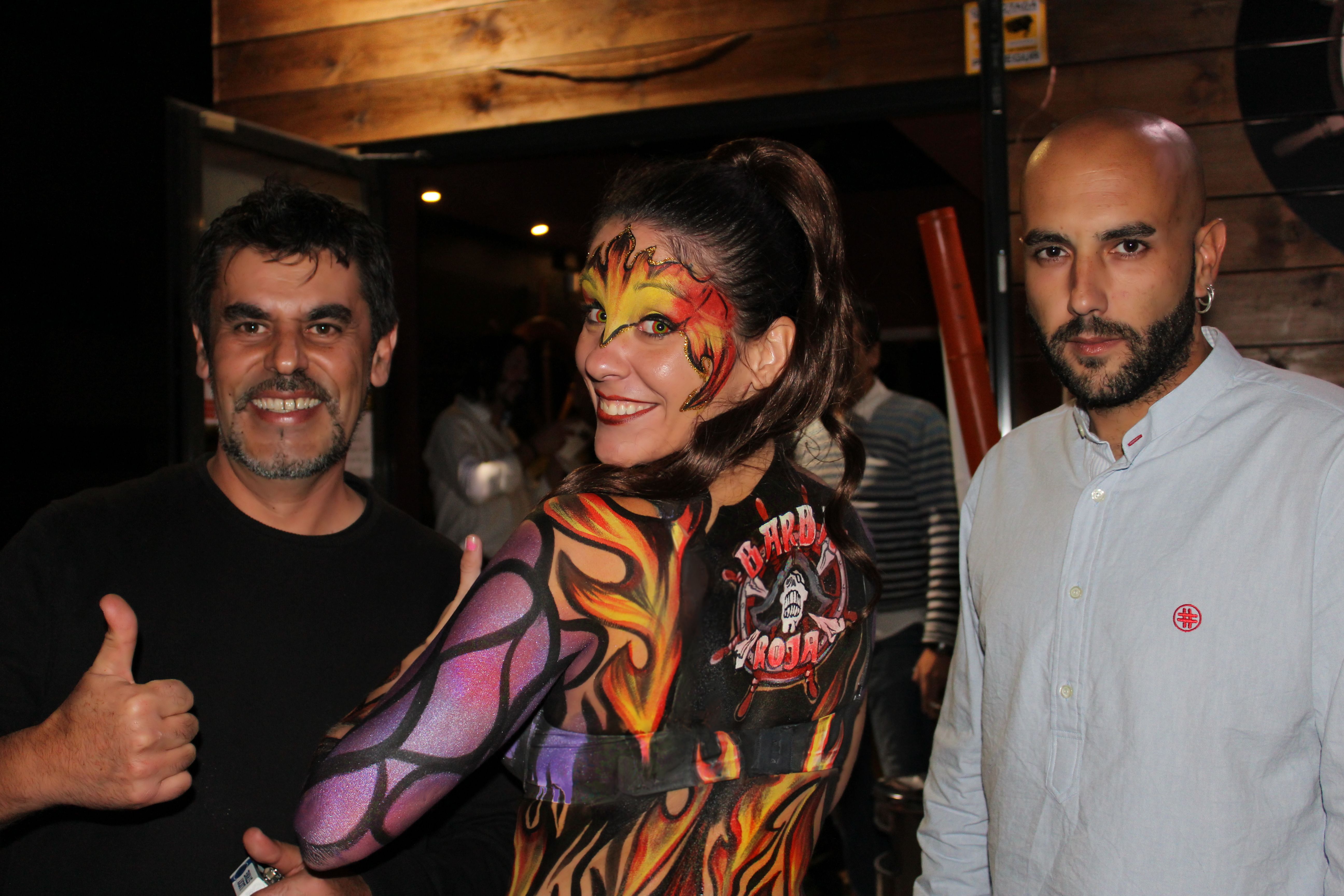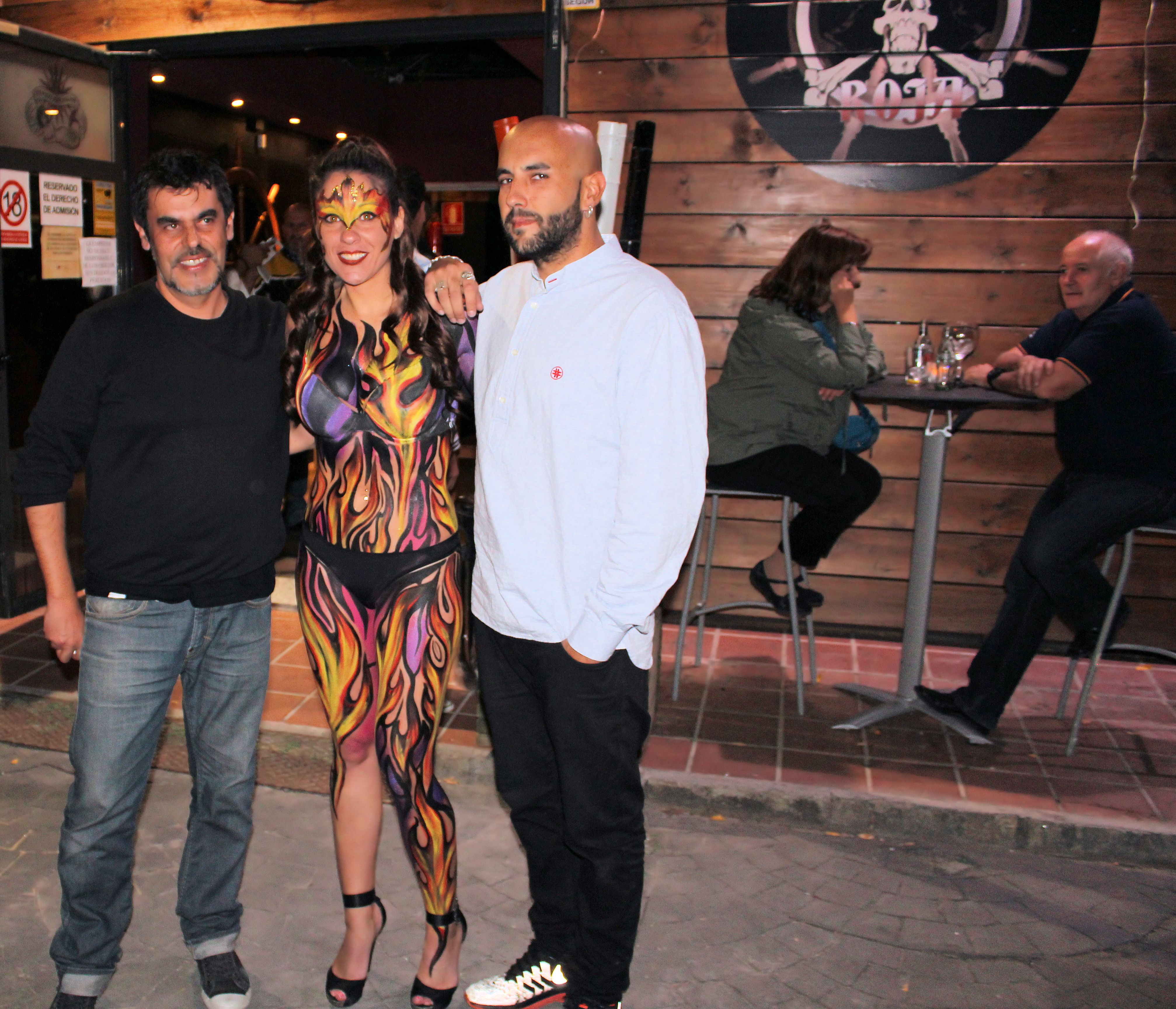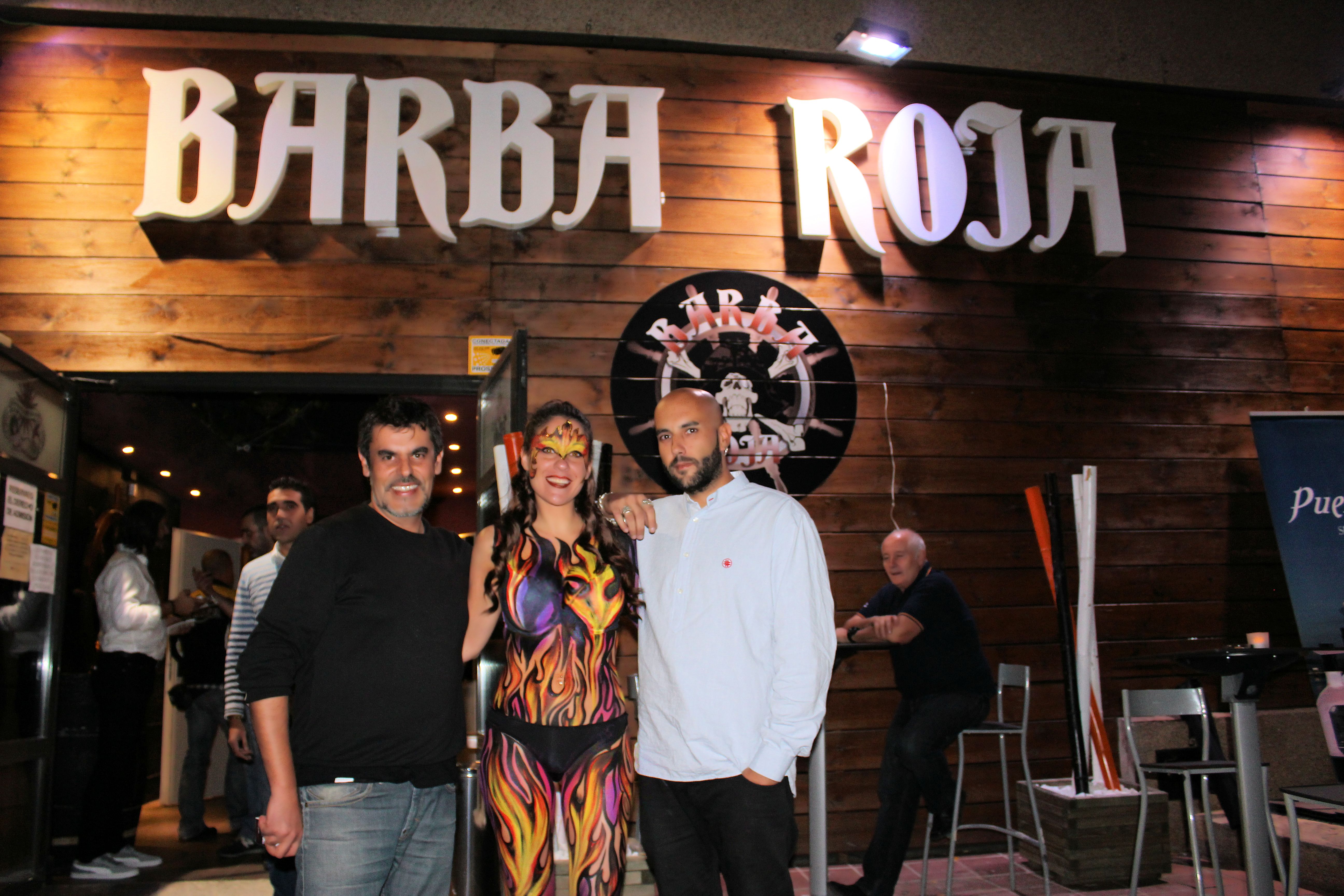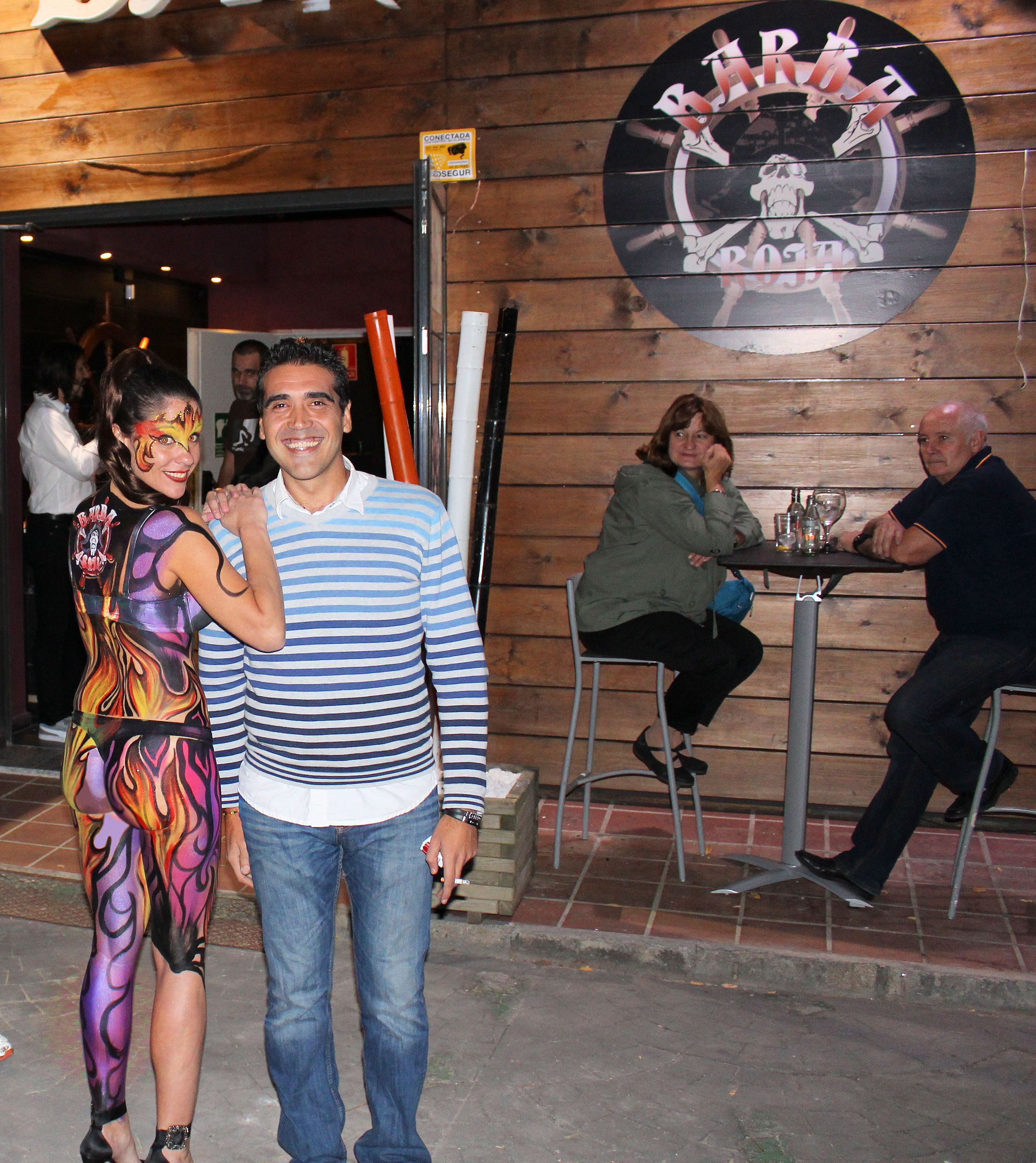 En la espalda nuestra bodypainter Esther Sagbal incluyó el logo de la sala de conciertos y bar Barabaroja, situada en la localidad de las Rozas, Madrid.