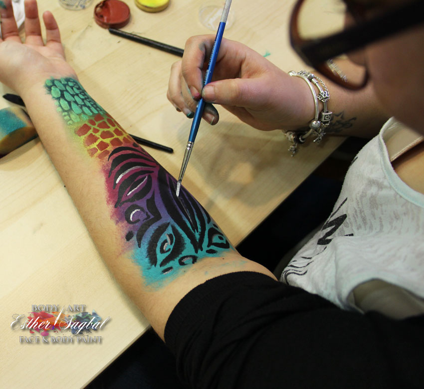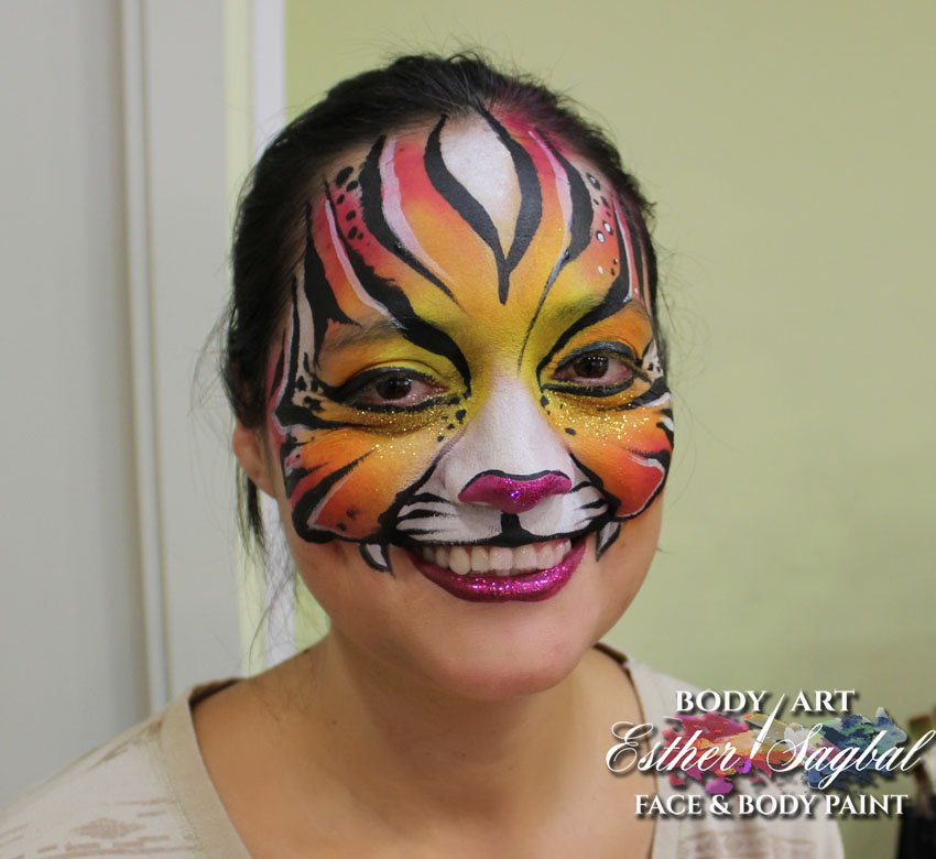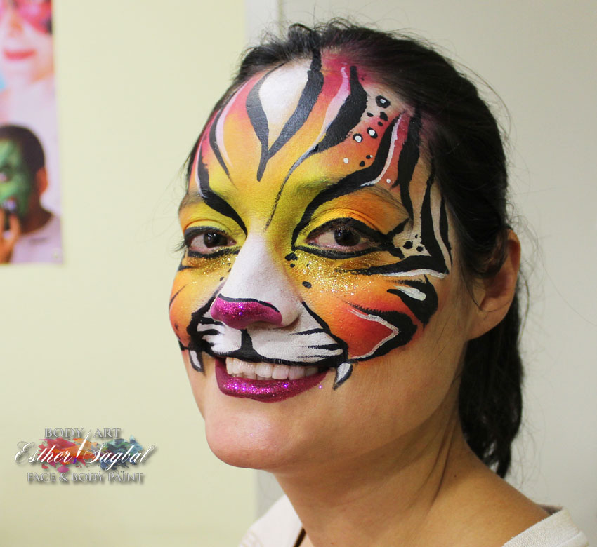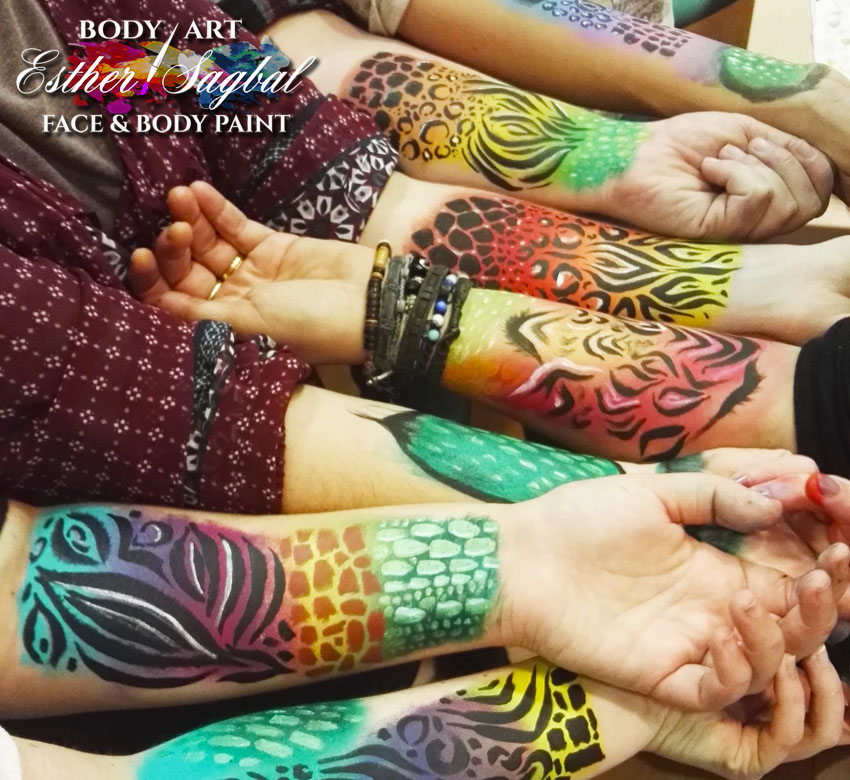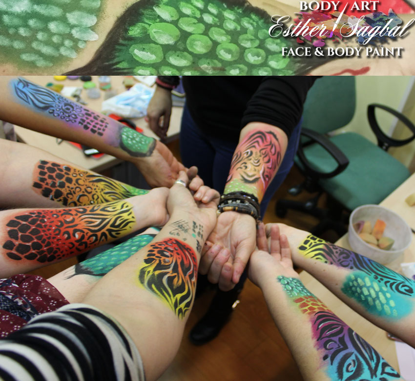 Pintacaras Facepainting Madrid y nuestra profesora Esther Sagbal imparten el curso de facepaint diseños de animales.