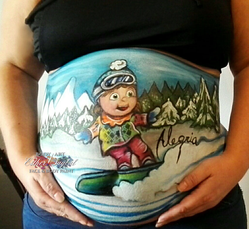 Donde pintarse la tripa de embaraza en MadridBellypaint para una futura amante de la nieve.