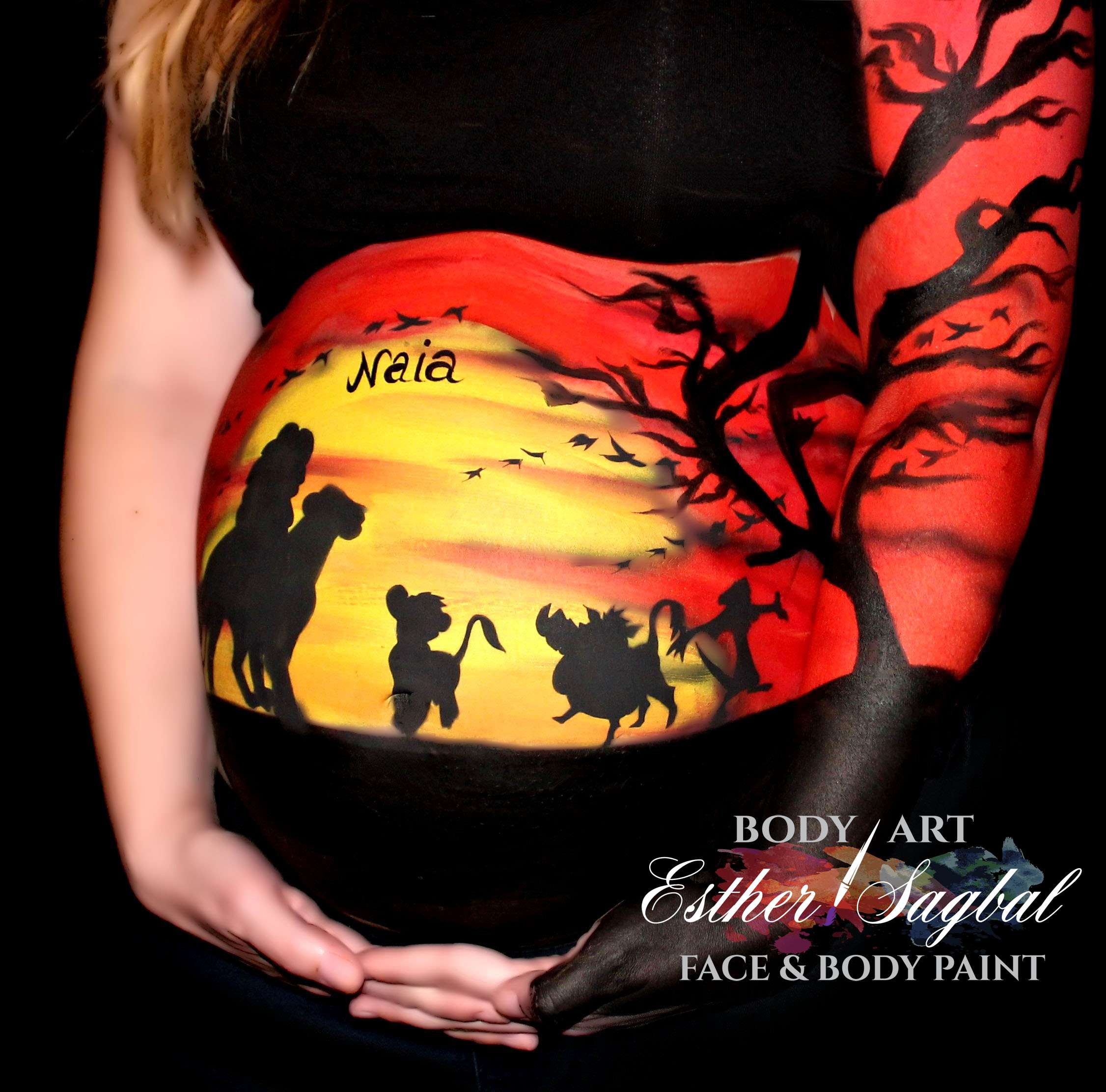 Esta vez los futuros padres eligieron un bellypaint de la escena de la película “El Rey León” :