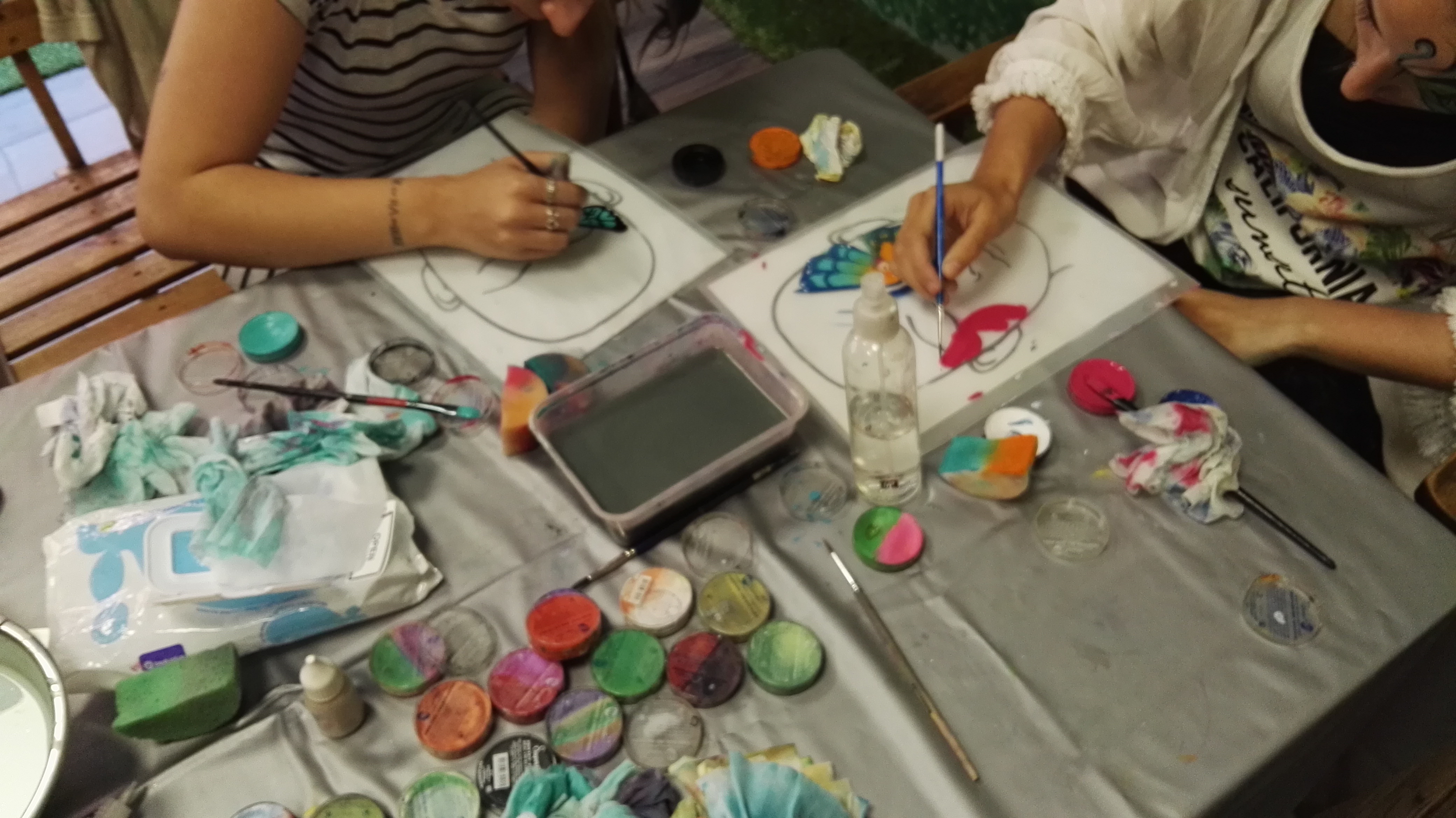 Aprendimos la técnica del aguacolor y a trabajar con pinceles y esponjas para realizar los diseños más solicitados por los niños.