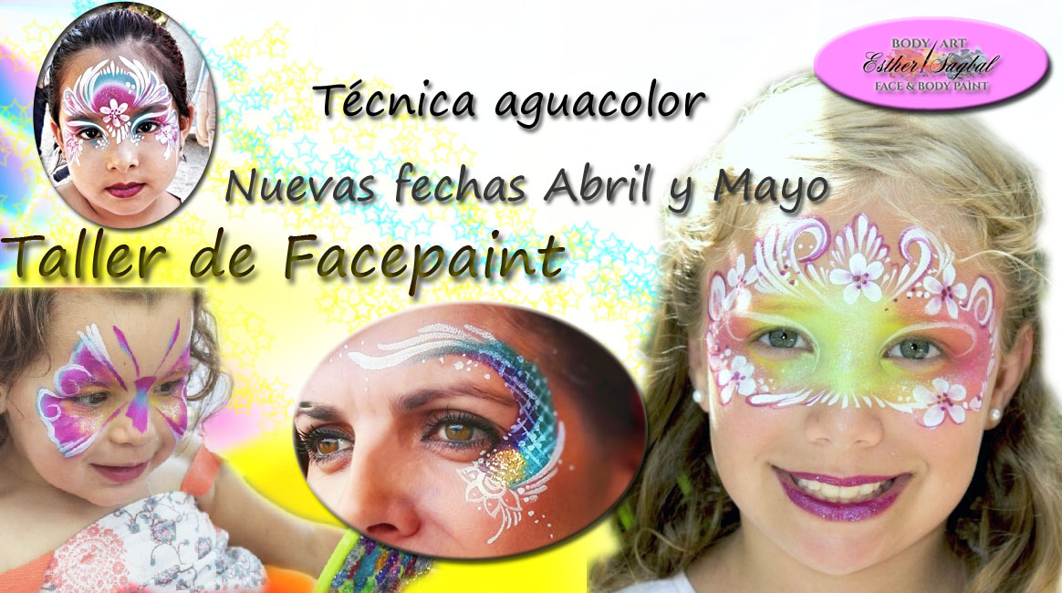 - Domingo 7 de Mayo de 10 am a 2 pm: 4 intensas horas para conocer el manejo de las cajitas arcoiris: aplicación de los aguacolores para realizar flores y hojas de un periquete y dar un toque multicolor a tus mariposas además de ganar rapidez en tus diseños para que no se formen esas enormes colas!Contacta con nosotros a través del formulario adjunto o por email a esther@pintacaras-facepainting.com whatsapp: 686893178
