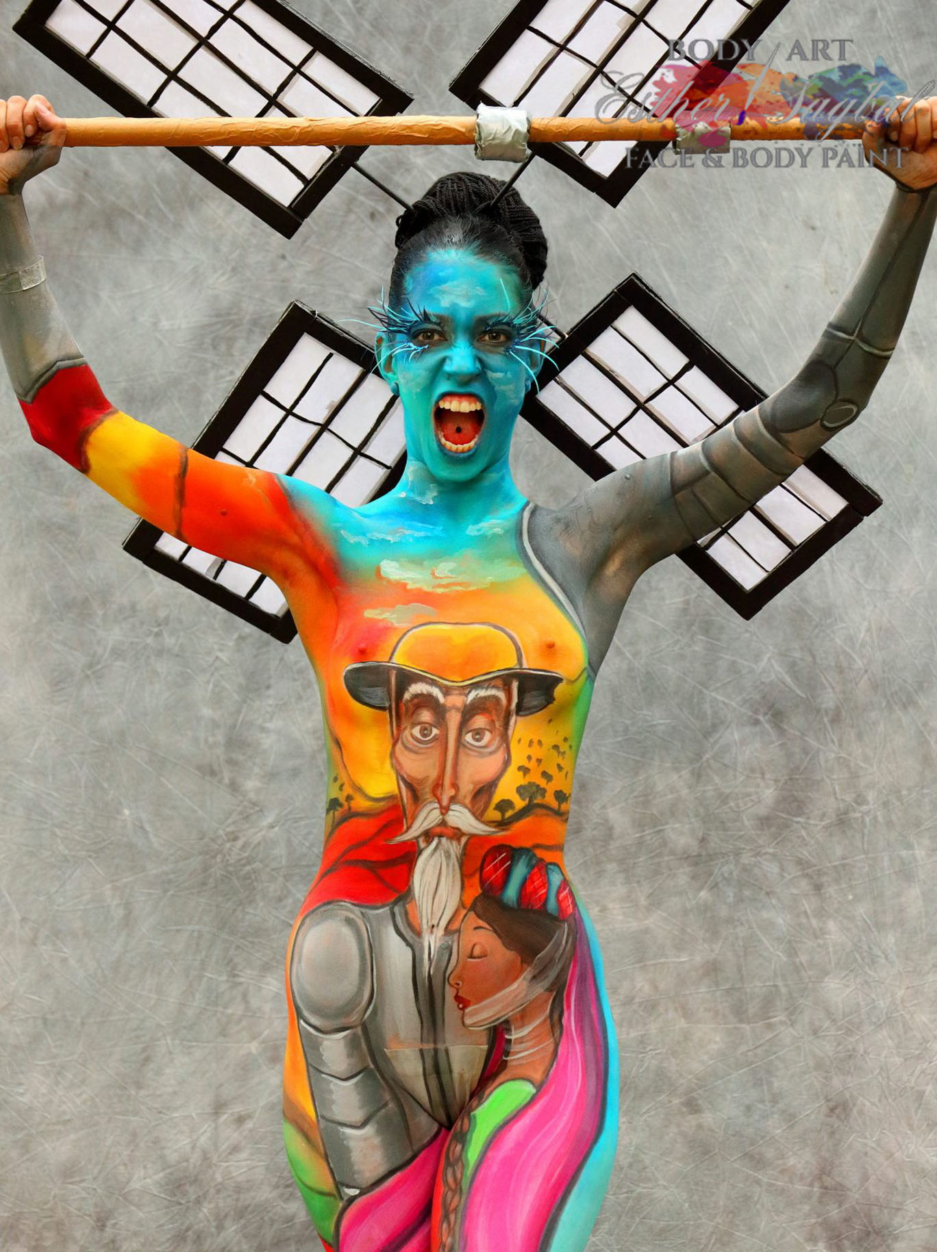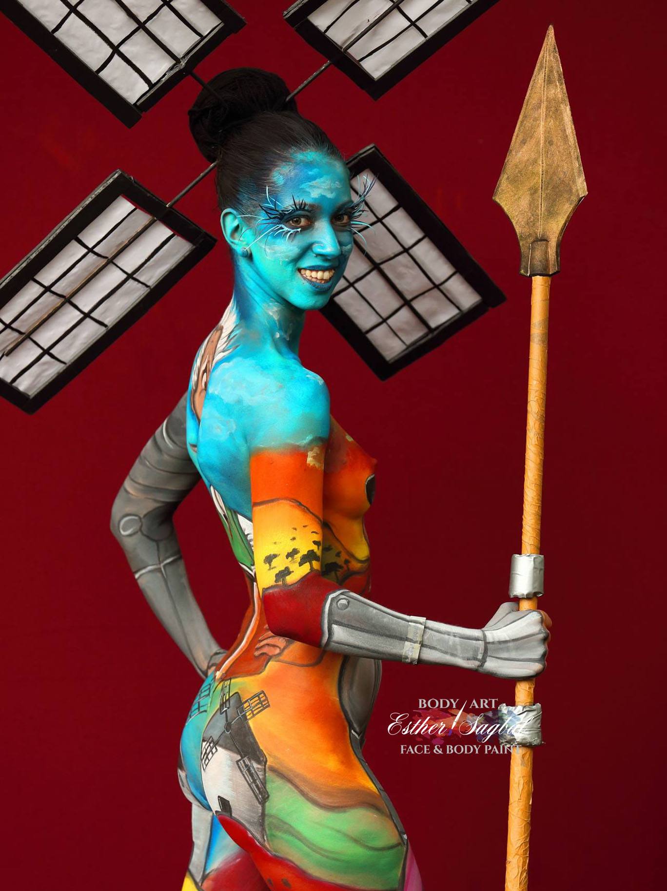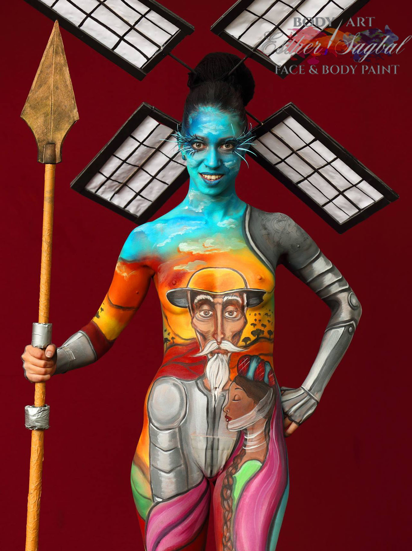 Nuestra Artista del body paint y Don Quijote de la Mancha.