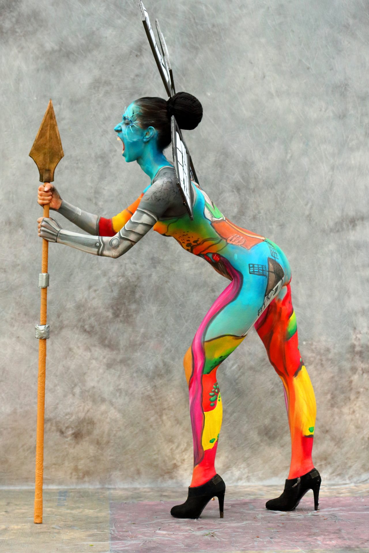 La cateoria mas importante y valorada del campeonato del mundo de Bodypaint es la «profesiona de pincel y esponja».