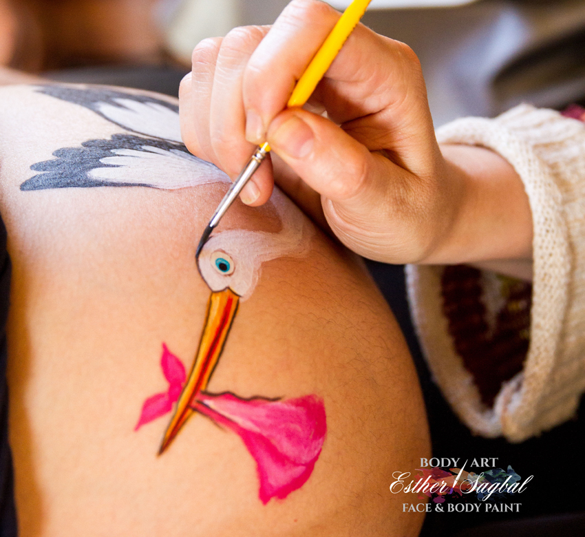 Esther Sagbal Face & Body Art propone unas sesiones de bellypaint o Bodypaint a embarazadas muy profesionales y divertidas.