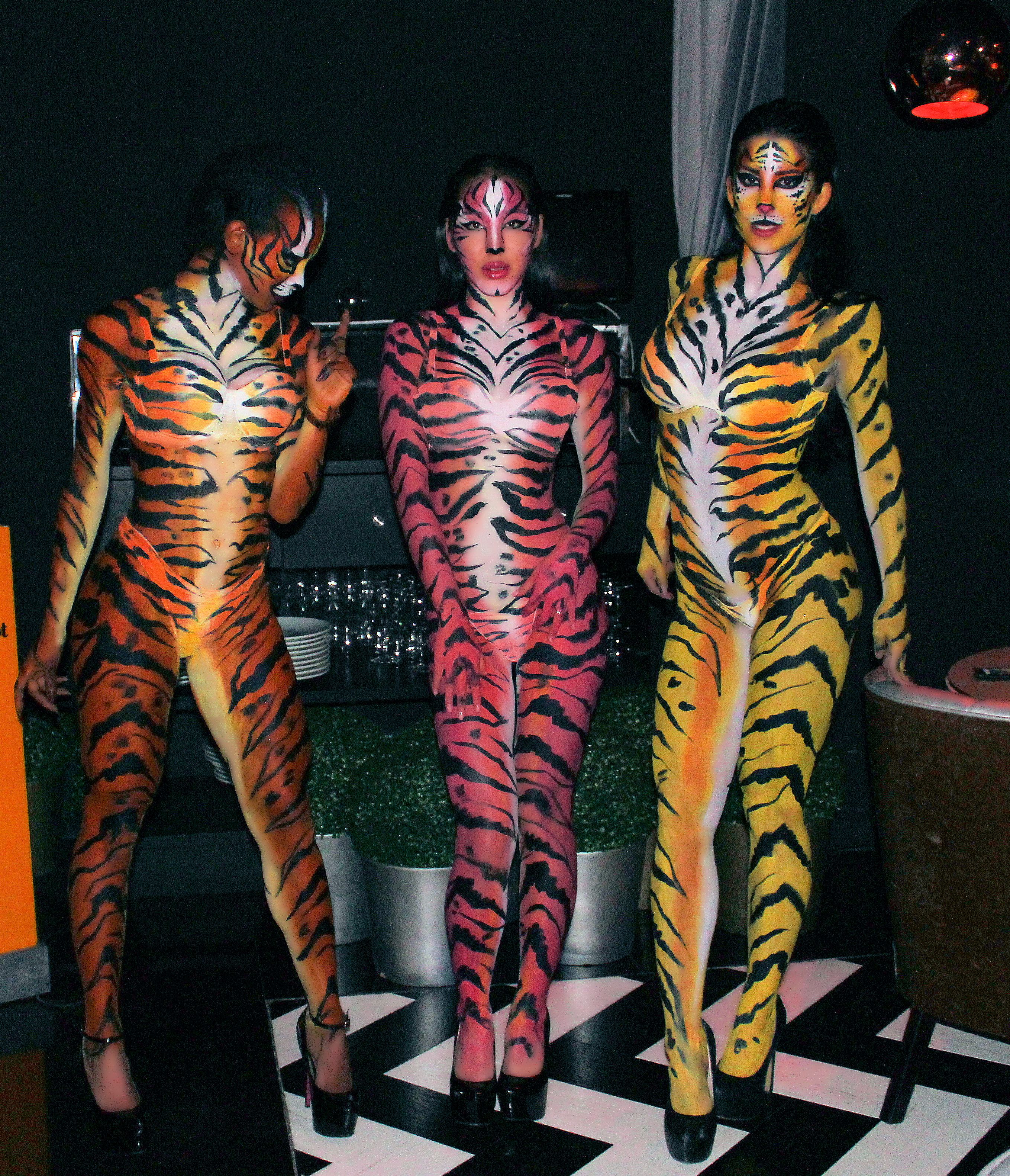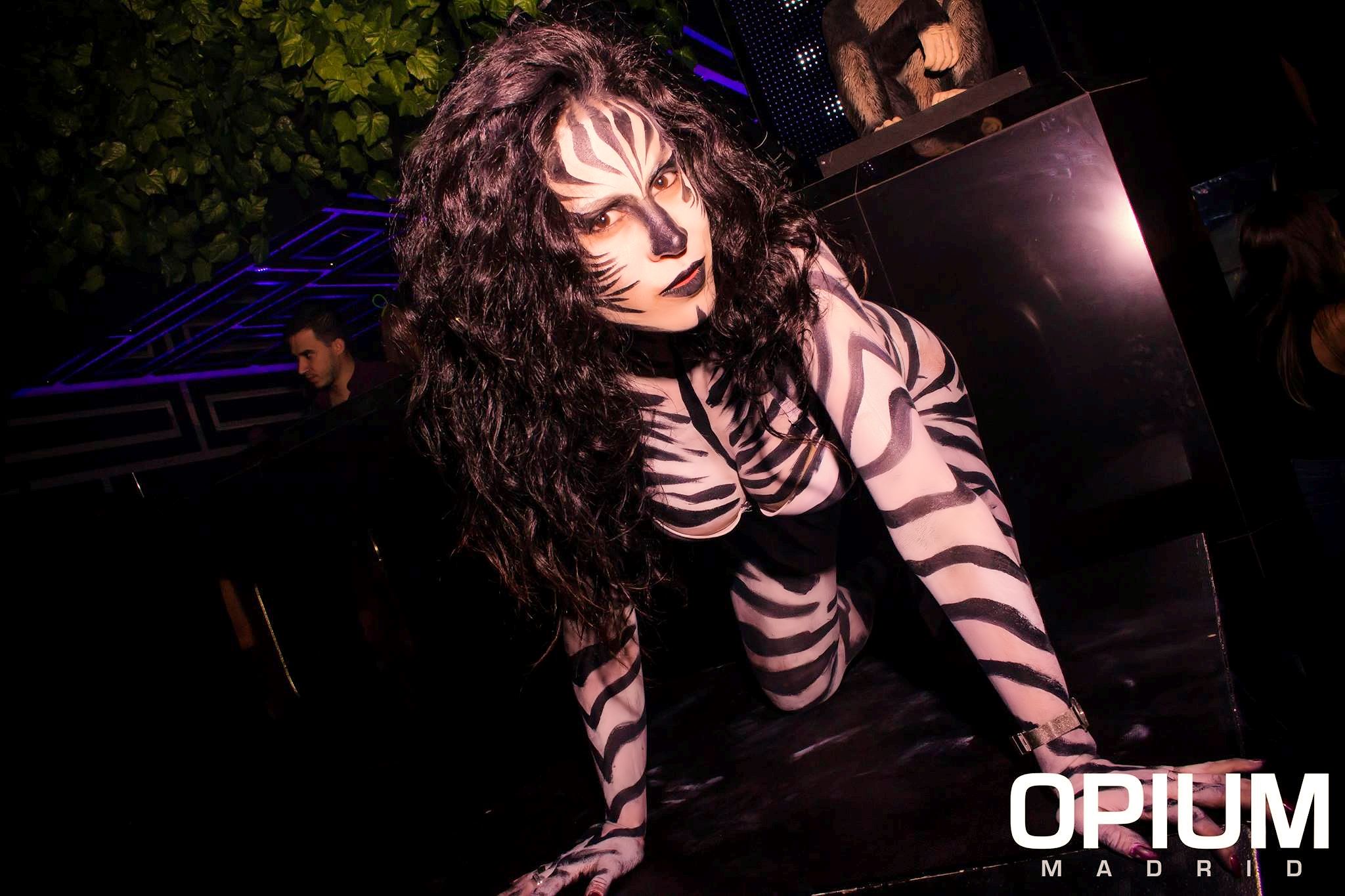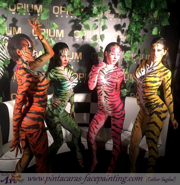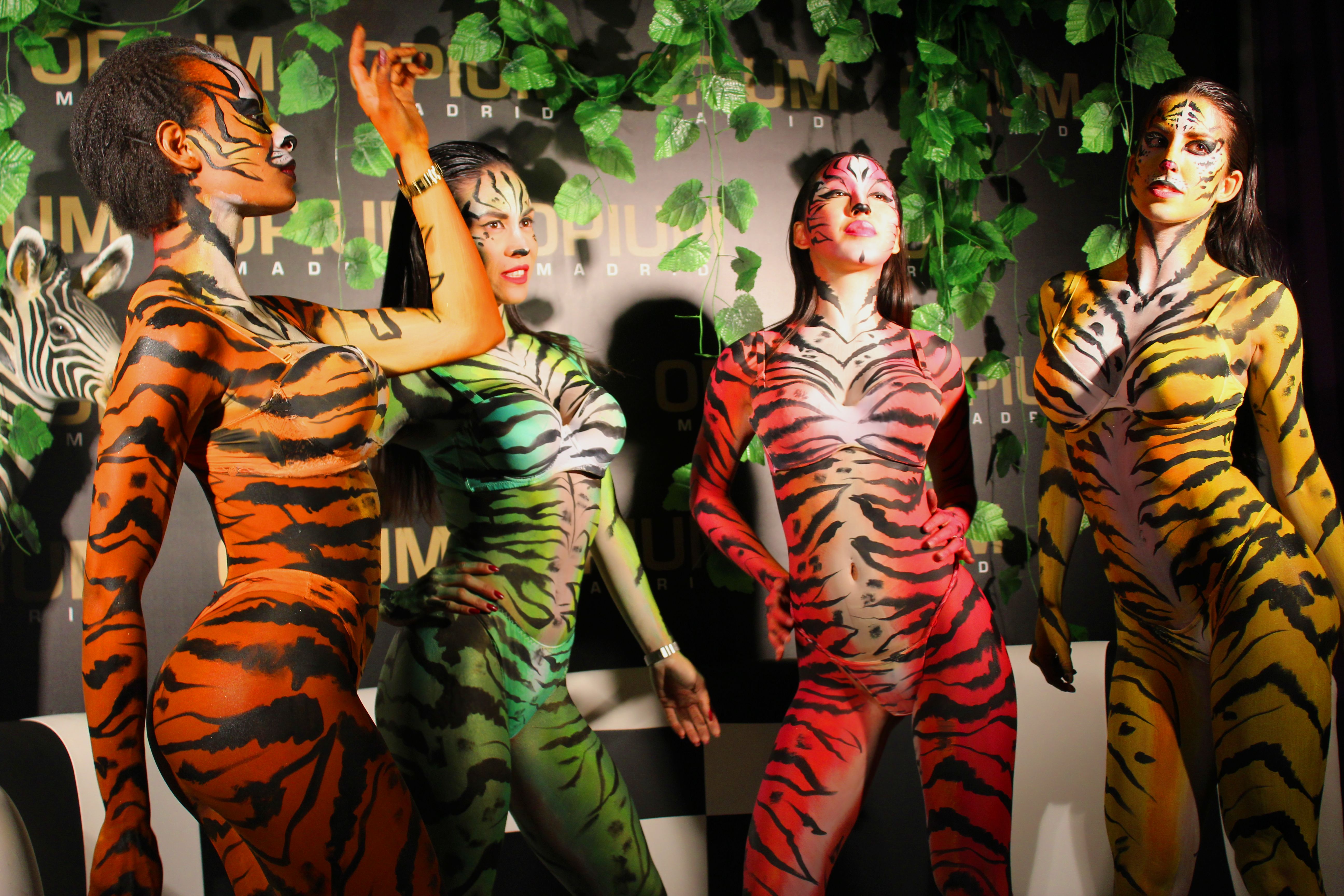Las bailarinas de esta sala madrileña, quedaron así de espectaculares con esta pintura corporal simulando animales.
