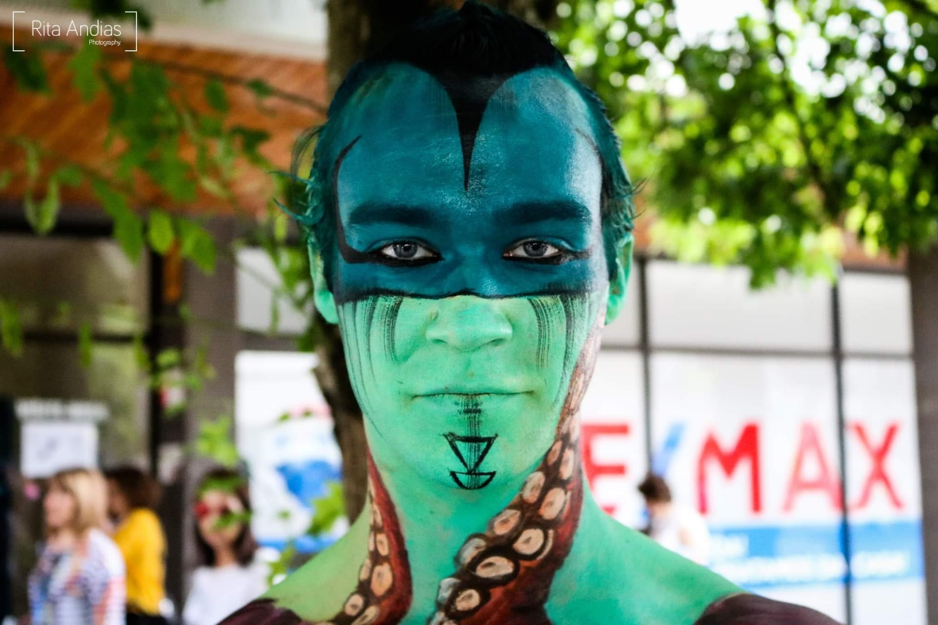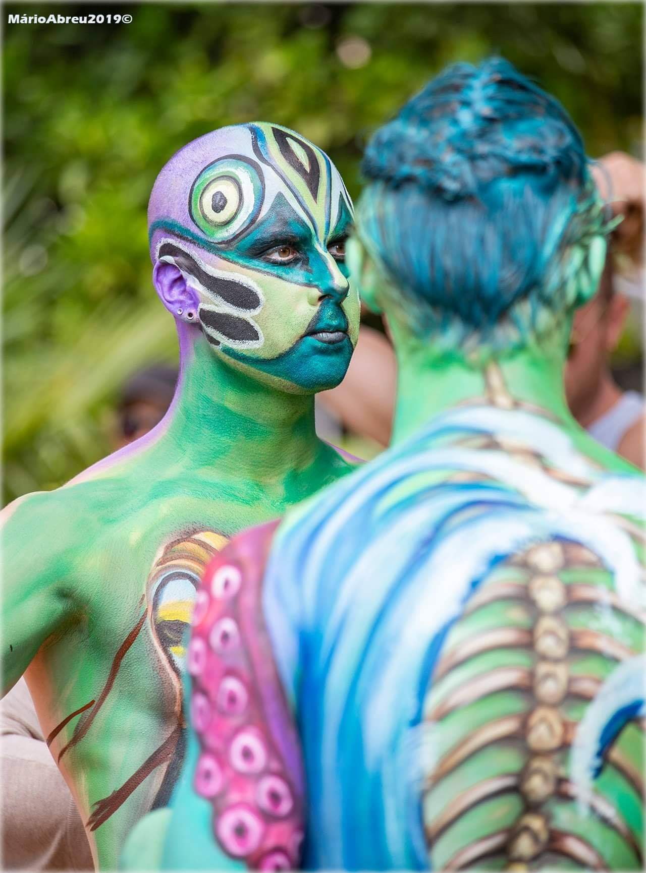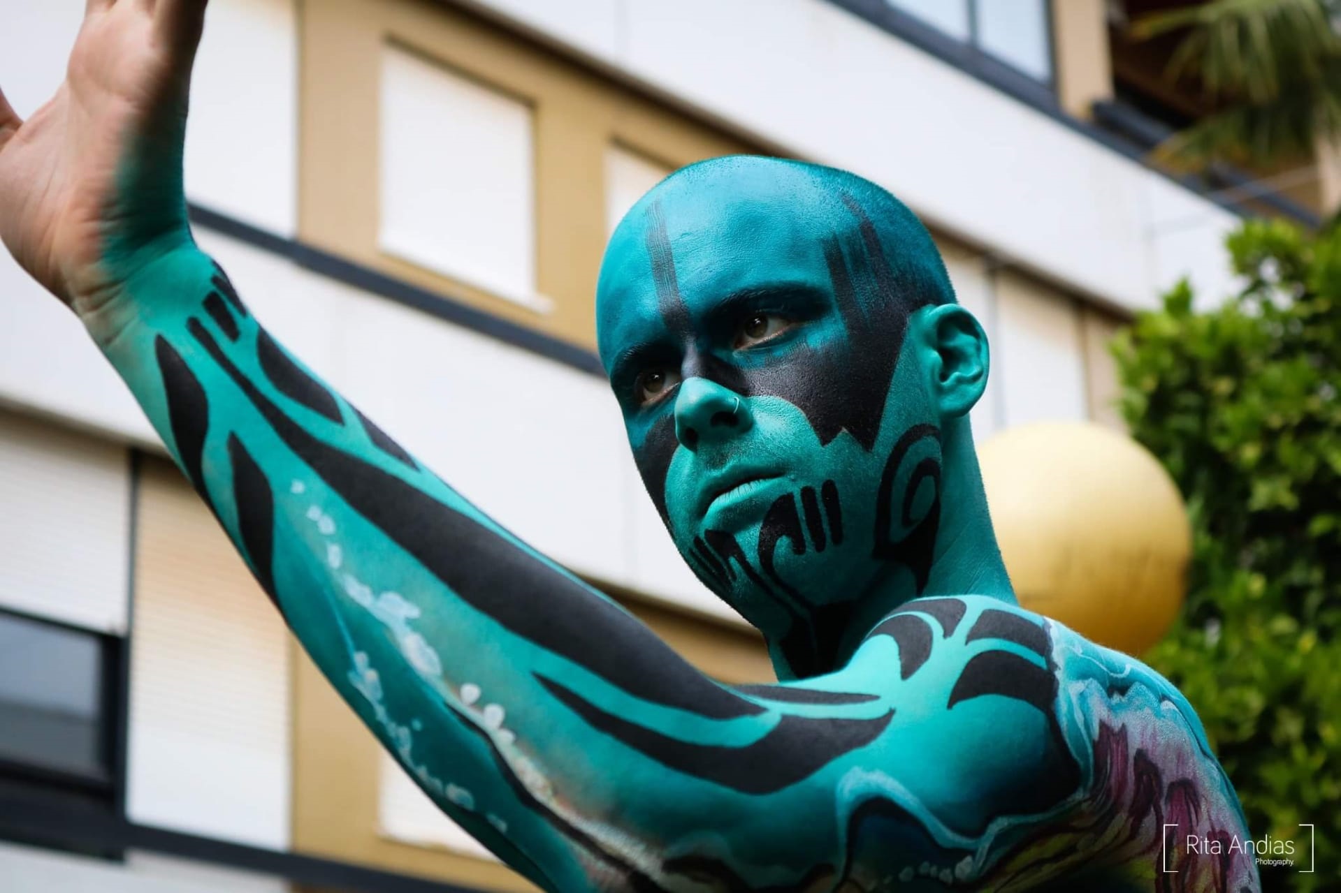 Tuvimos la oportunidad de contar con los alumnos de los talleres de bodypaint que durante dos día impartimos y que realizaron un magnífico trabajo, tanto de maquillaje, como de montaje de estructuras, atrezzo y atrezzo.