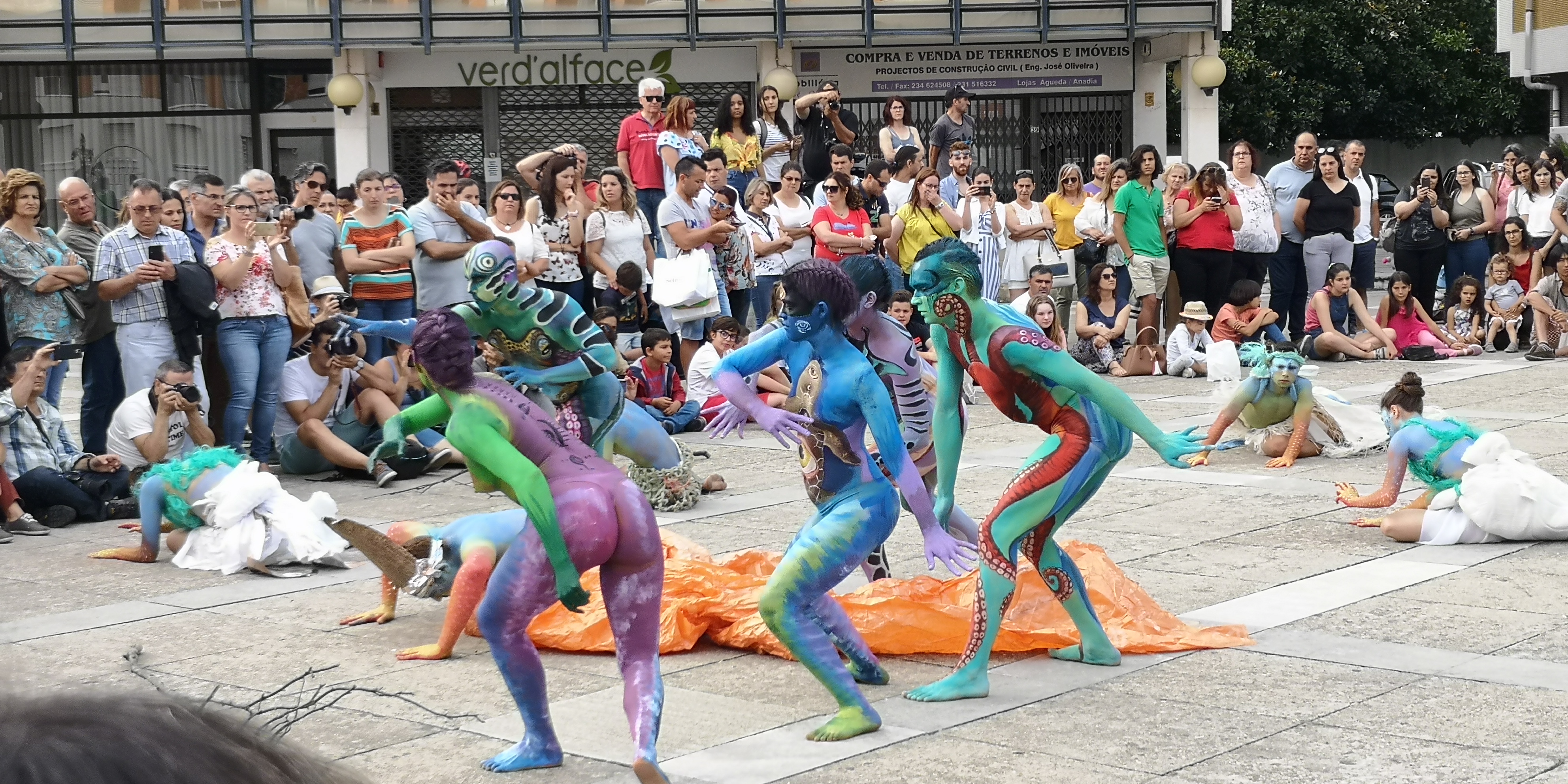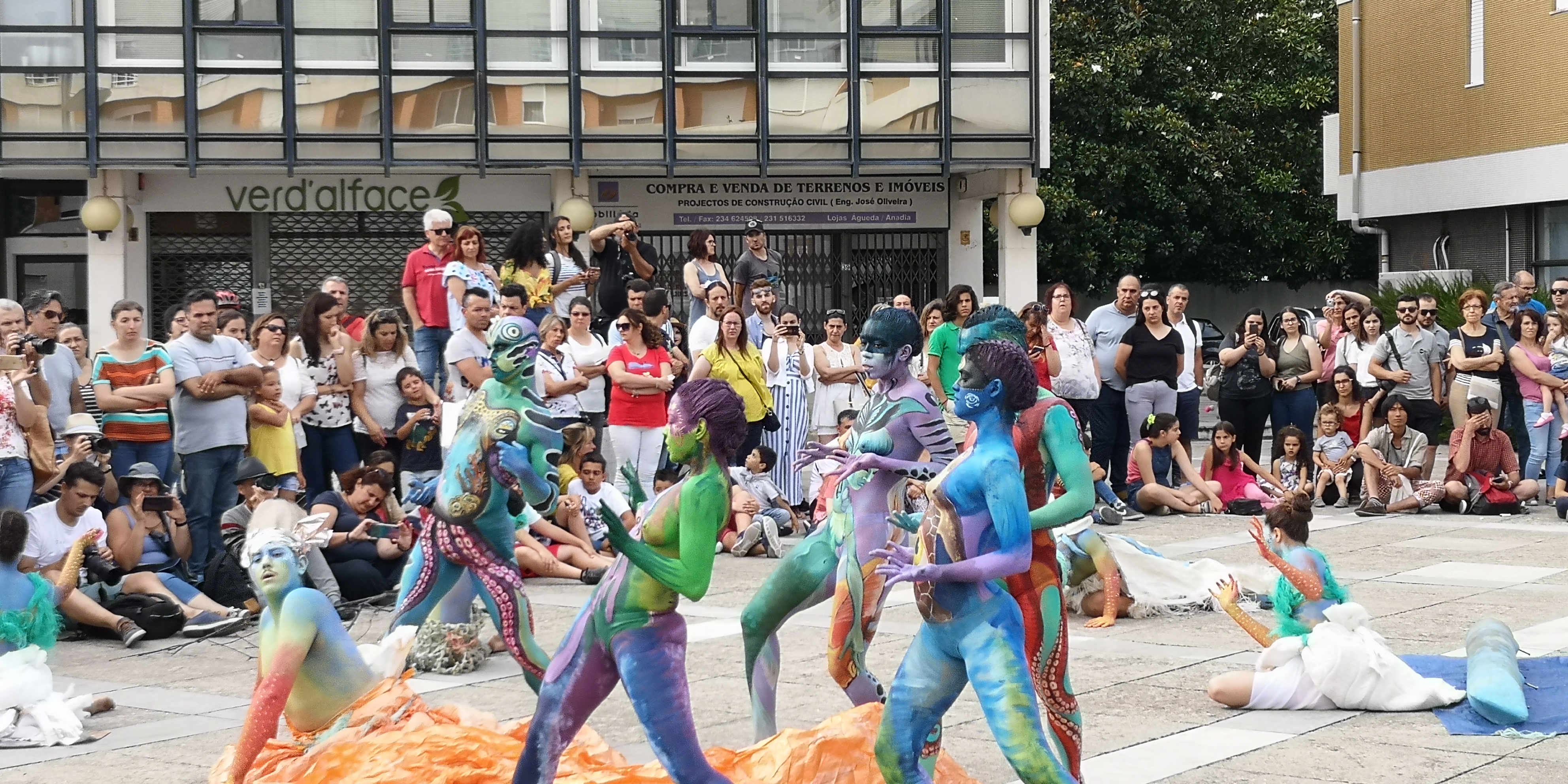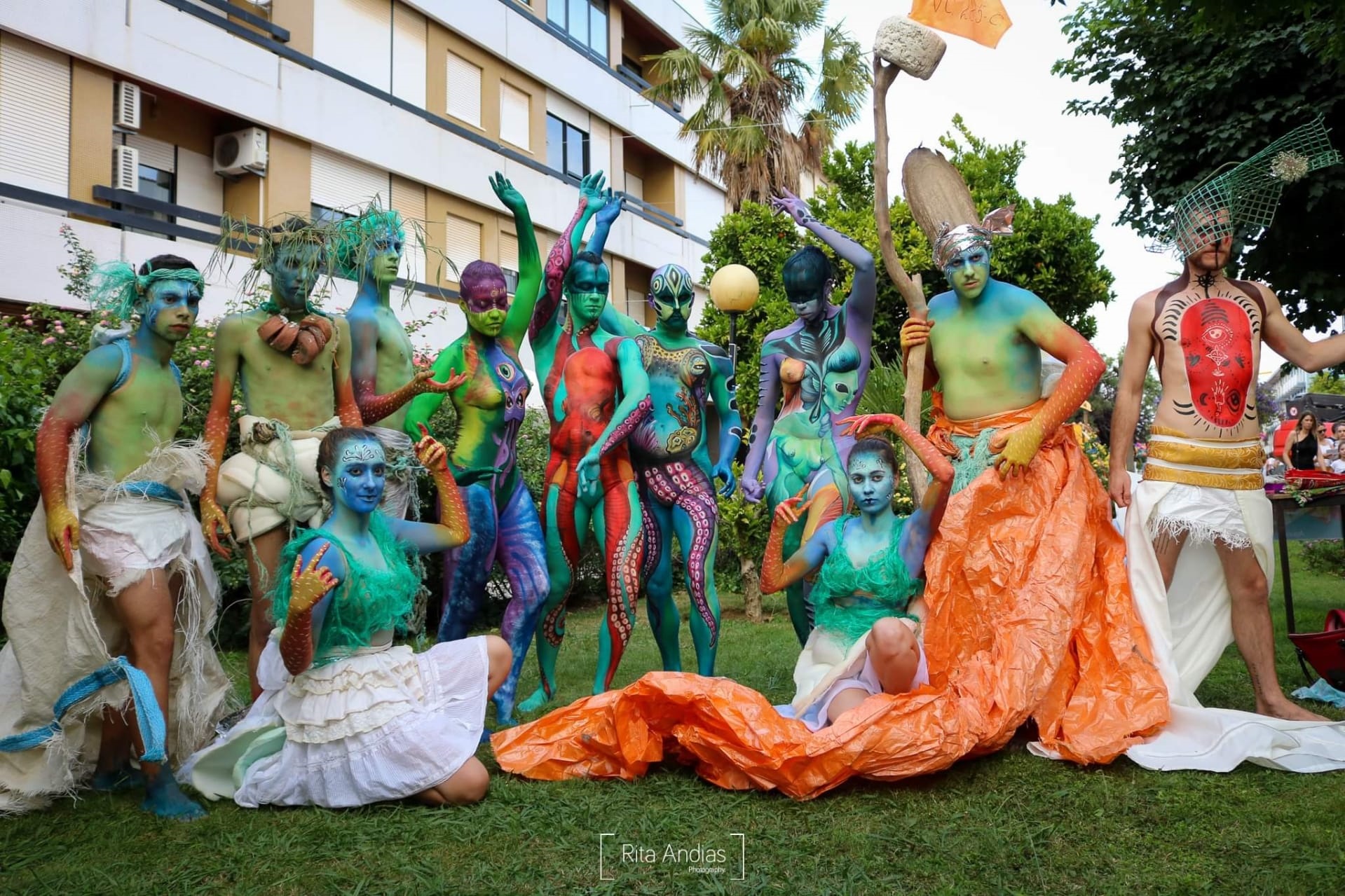 Creamos un performance para la presentación en el festival consistente en la representación de criaturas marinas intentando transmitir al público un mensaje para animar al cuidado de los océanos.
