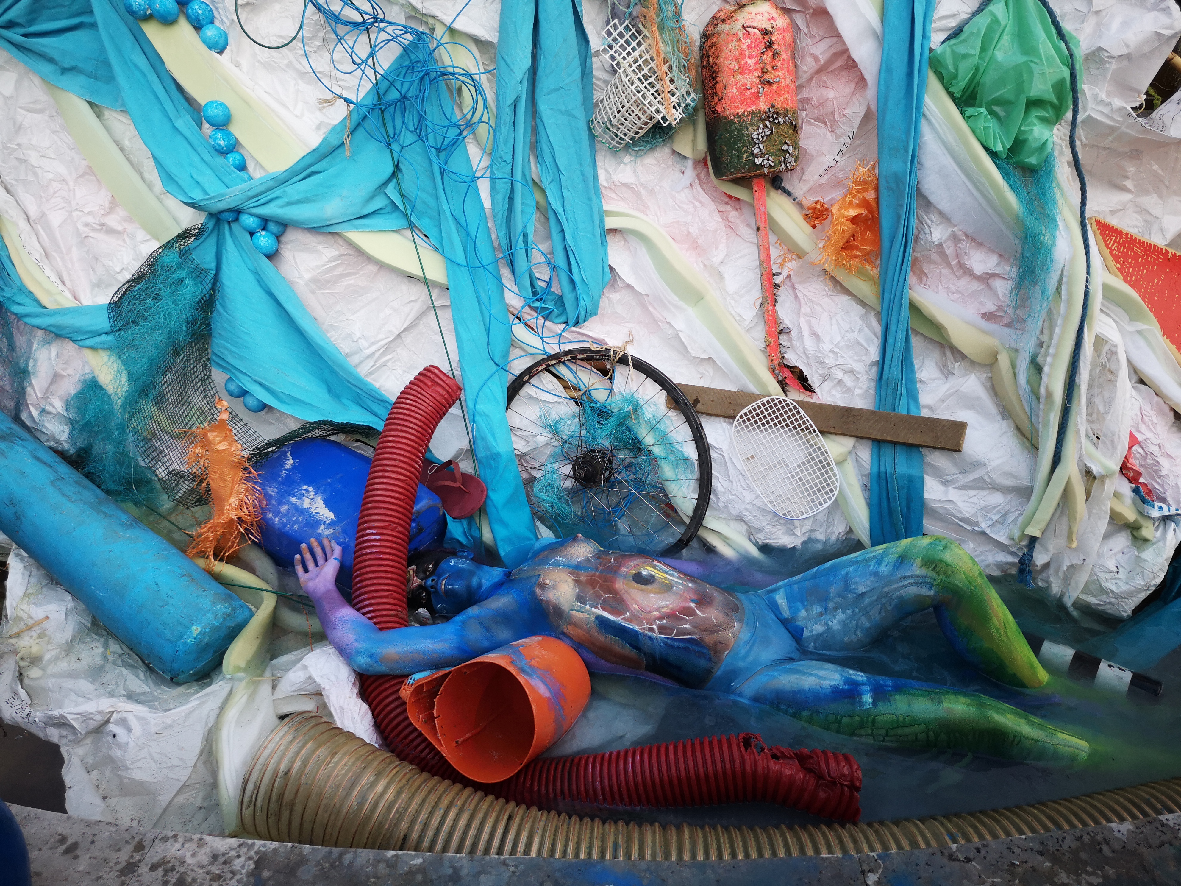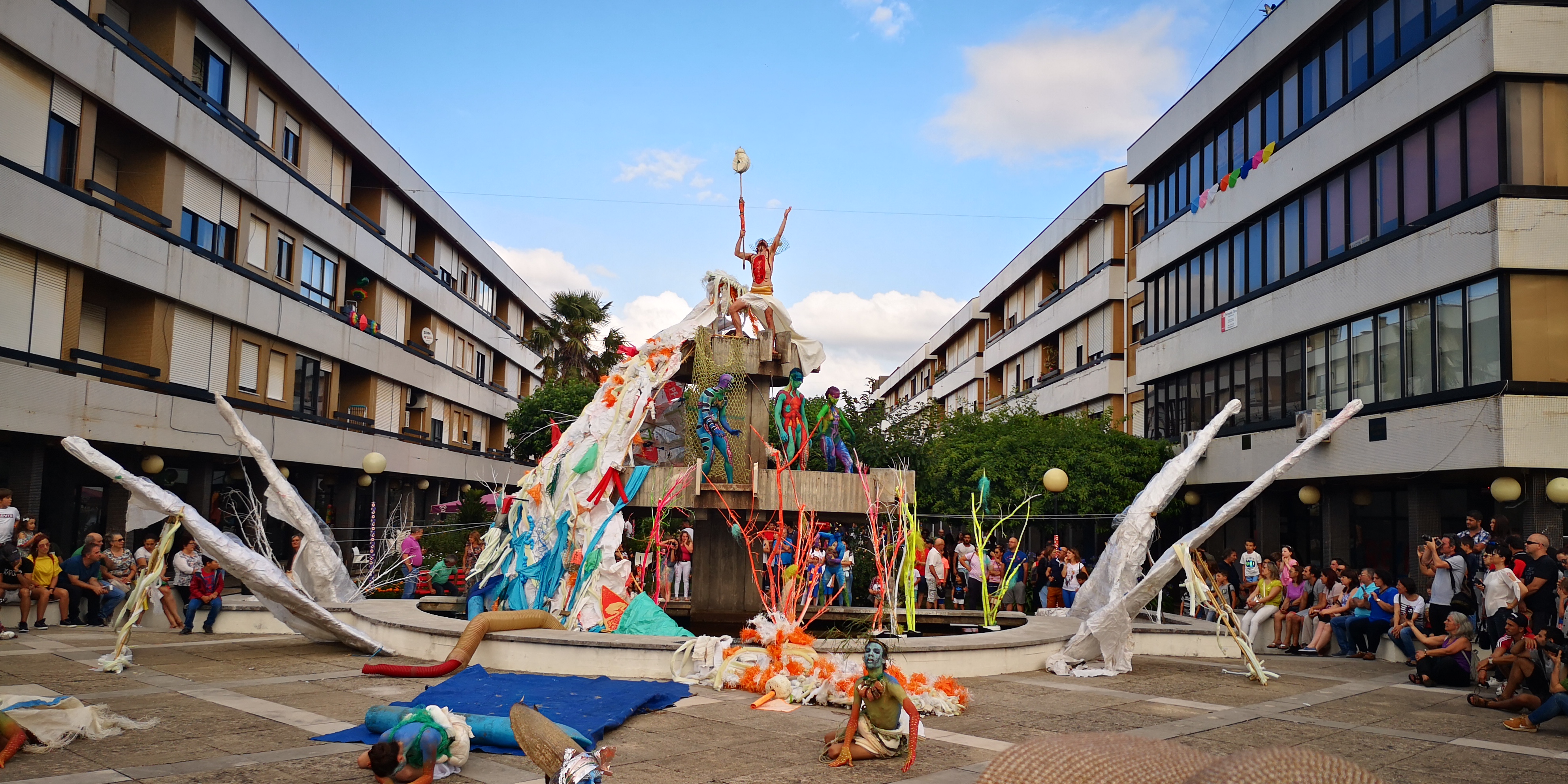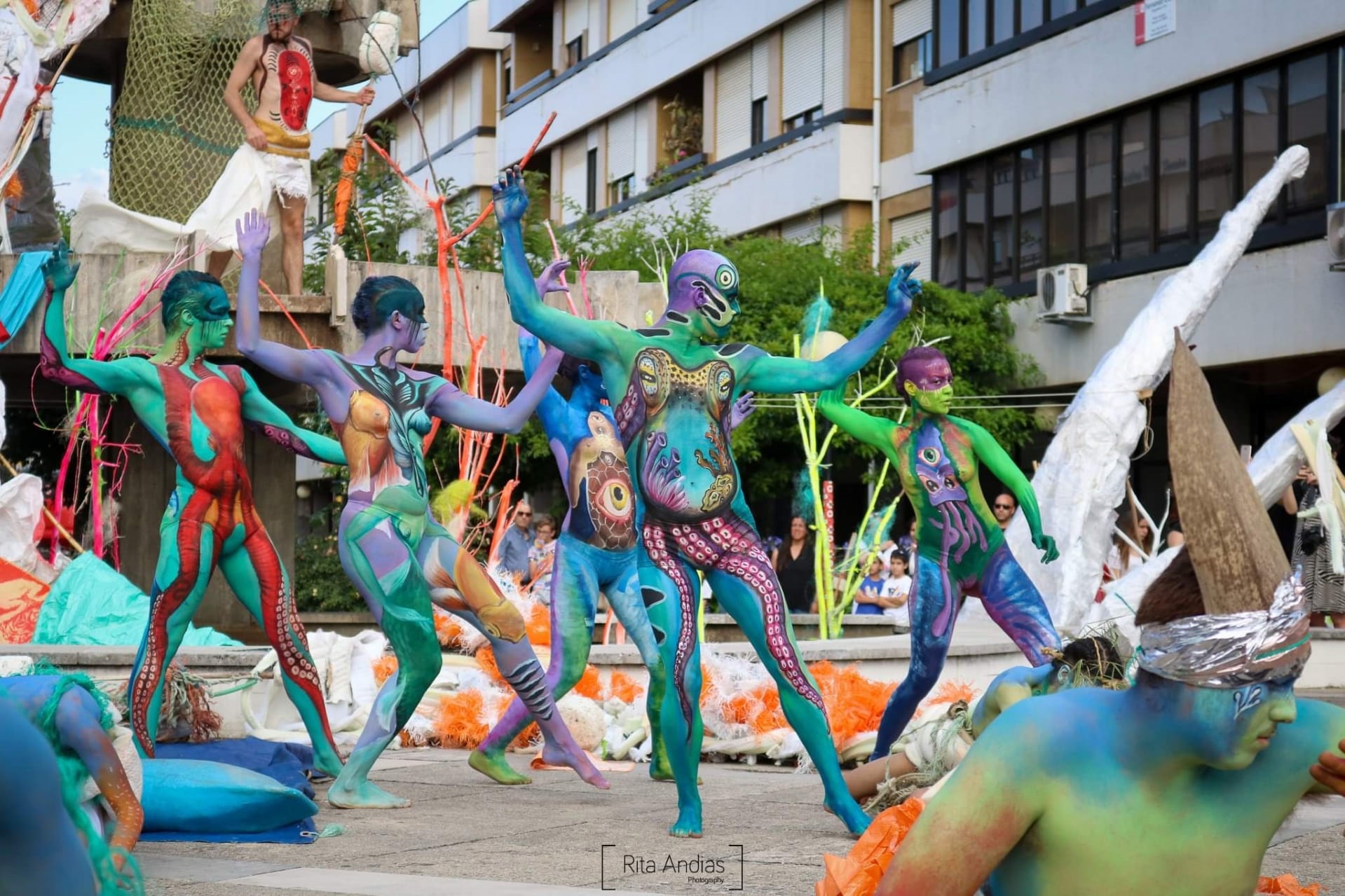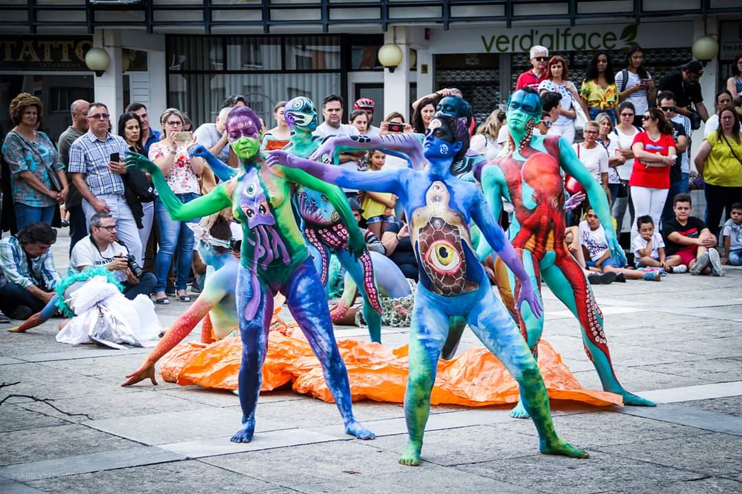 Creamos un performance para la presentación en el festival consistente en la representación de criaturas marinas intentando transmitir al público un mensaje para animar al cuidado de los océanos.