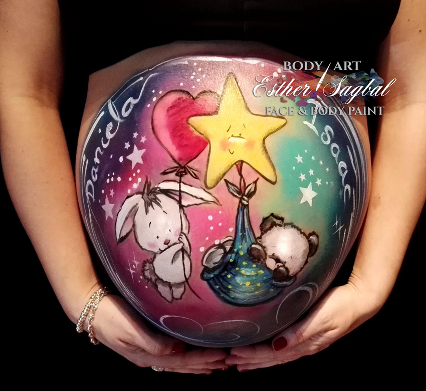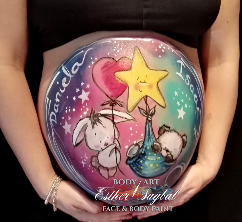 Además contamos con una futura mami encantadora sobre la cual Esther realizó un trabajo de Bellypaint muy tierno.