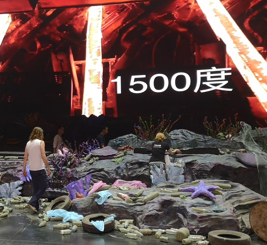 Bajo esta temática el artista Johannes Stoetter, nos intentó transmitir un mensaje de concienciación para el cuidado de los océanos.