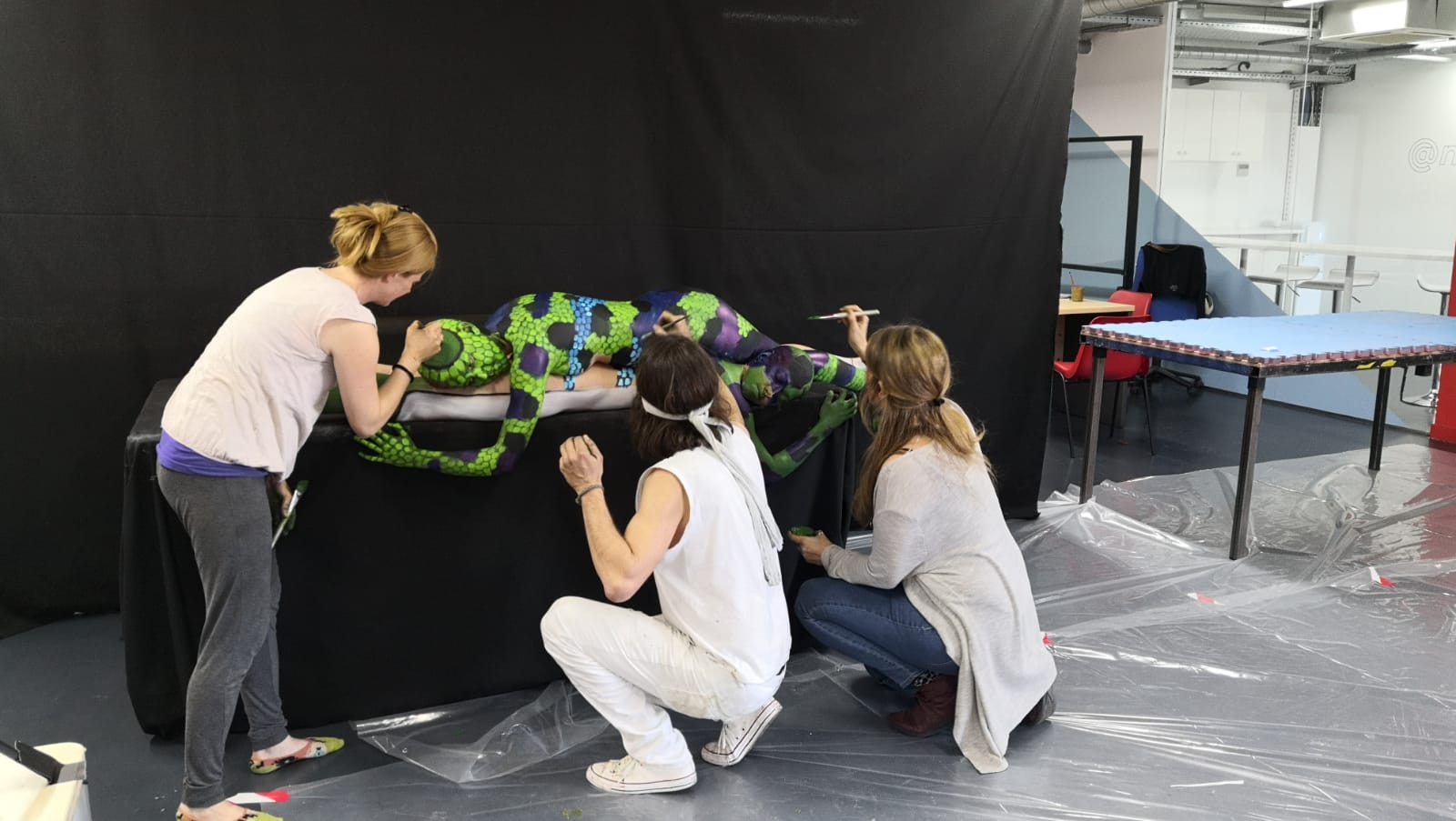 Un trabajo consistente en la realización a través del Bodypaint de un tigre formado por 5 modelos y un camaleón formado por 2 modelos.