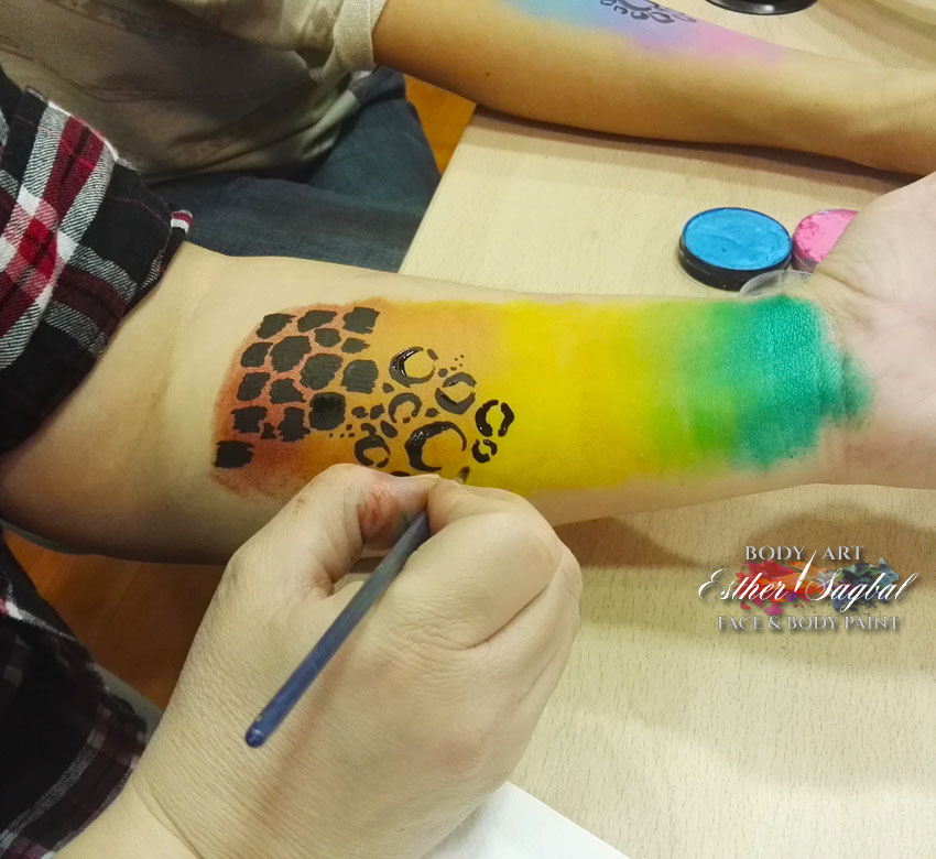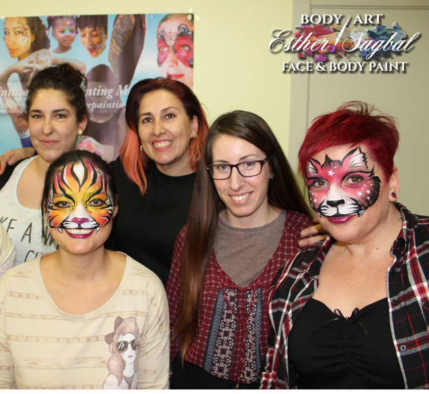 Pintacaras Facepainting Madrid y nuestra profesora Esther Sagbal imparten el curso de facepaint diseños de animales.