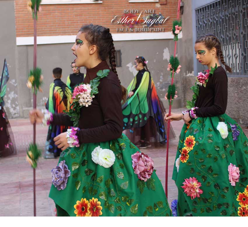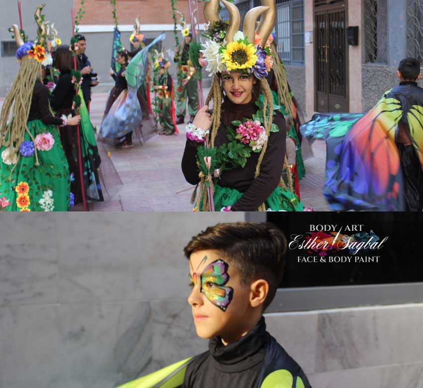 Realizamos 30 maquillajes en tiempo récord animando de este modo el precioso disfraz de los participantes.